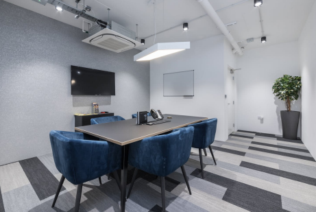 Modern Fit-Out: Includes a professional reception, open-plan work zones, private meeting rooms, and a dedicated cinema/presentation room.